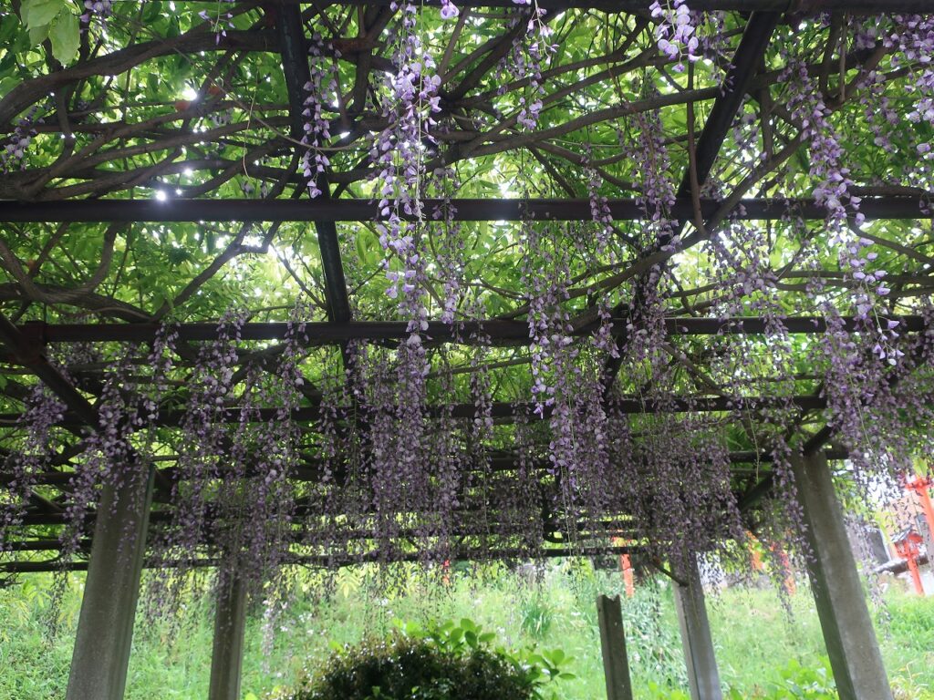 そして只今、ご朱印のスタンプでもありますように、藤の花がきれいに咲いております。