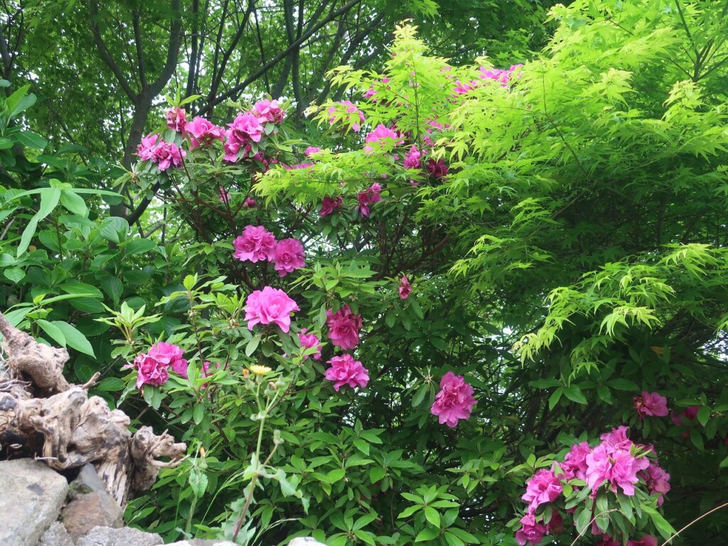 また、ツツジもきれいに咲いております。新芽の美しい新緑と併せて、どうぞ目の保養にしてください。