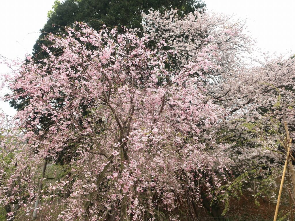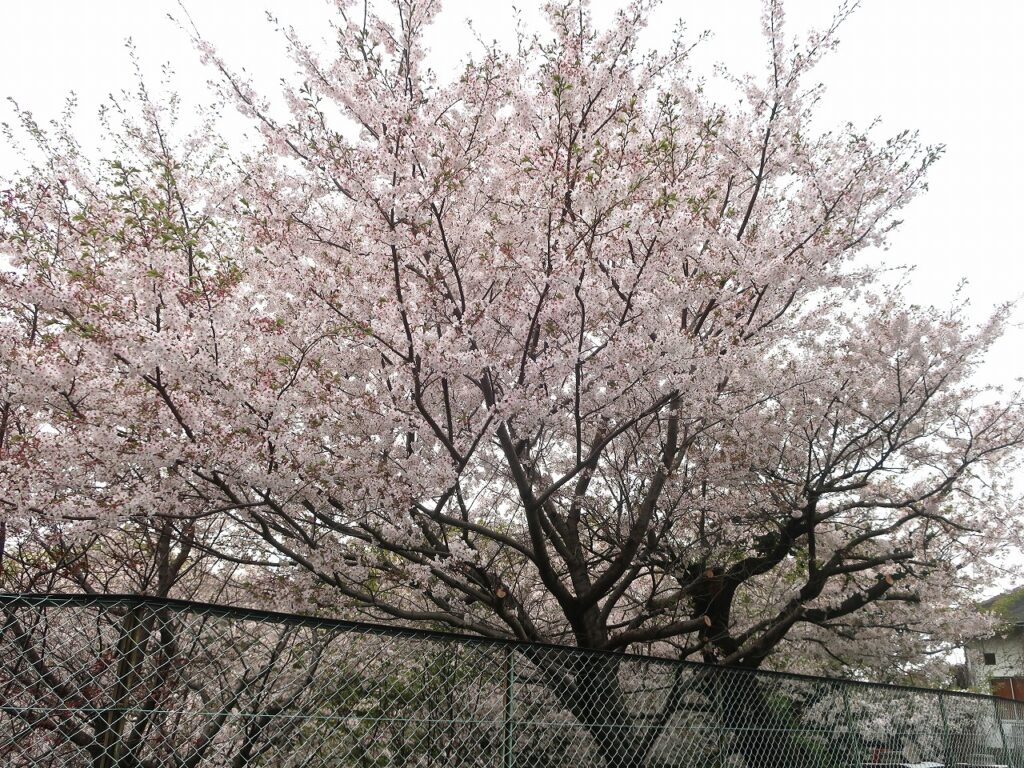 第2駐車場にあるソメイヨシノです。柵の向こう側は崖となっています。そこに植えた桜が大きくなり、駐車場からちょうど枝ぶりが間近に見られ、ちょっとした撮影スポットになっています。