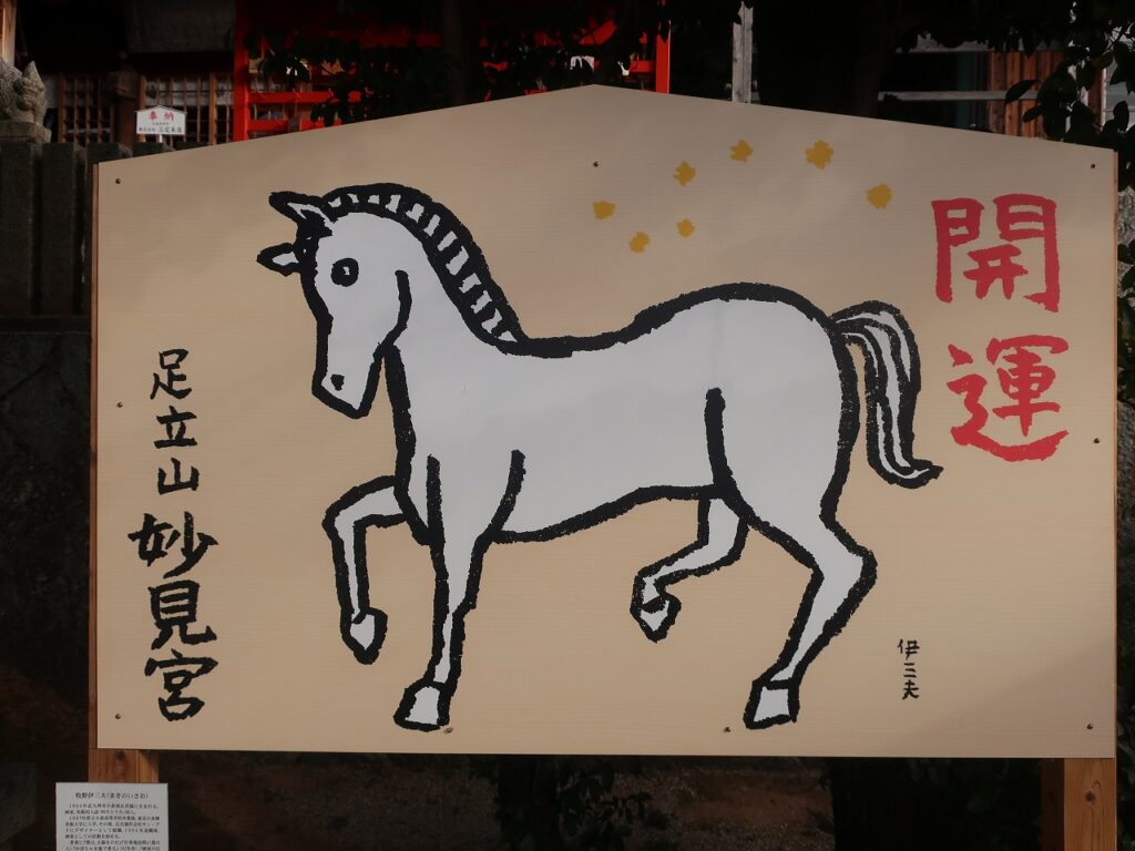 こちらは地元小倉南区の画家 牧野伊三夫さんのオリジナル絵馬です。伊三夫ワールド全開のオリジナル絵馬となっております