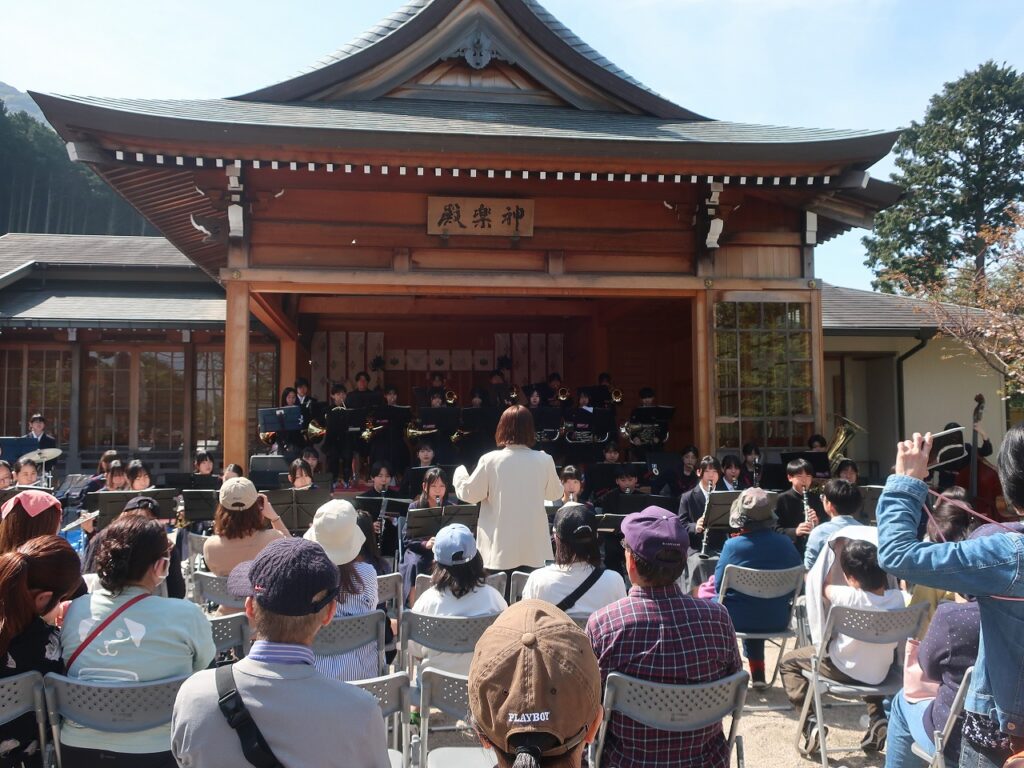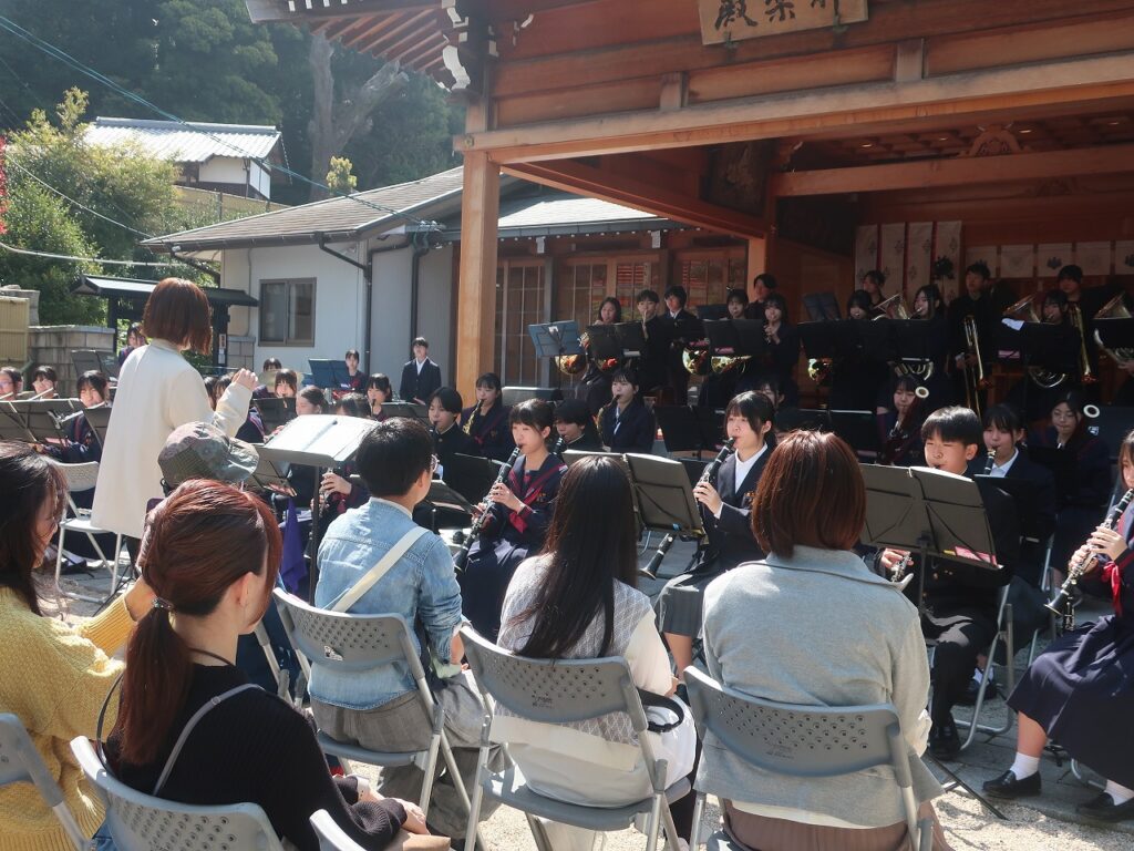 おかげさまでお天気にも恵まれ、絶好の奉納日和となりました。午前10時、地元霧丘中学校吹奏楽部の奉納演奏会。