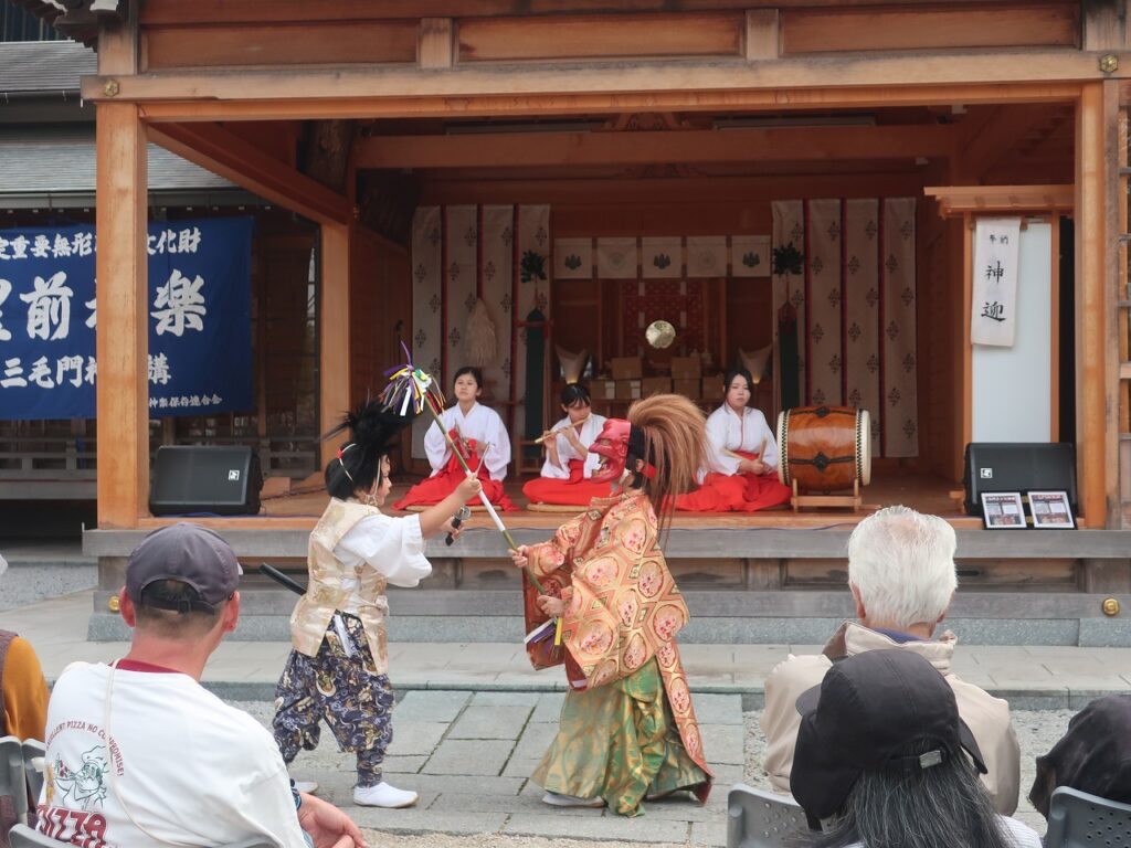 曲数がありましたので、今年は「神迎」を取り上げました。三毛門こども神楽の皆さんによる奉納でした。