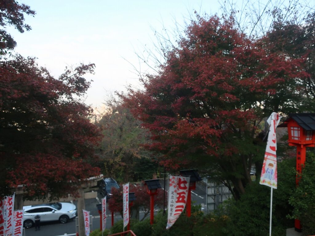 今まさに表参道のカエデが見頃となっております。昨日もこのカエデの横でお写真の撮影していました七五三のご家族を見かけました。